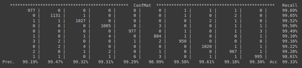 Top-1 accuracy ~99.3% / LeNet-5 like backbone / 630000 ips@(28x28)